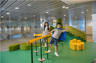 어린이들은 탑승 게이트 근처에 위치한 어린이 전용 놀이 공간에서 마음껏 즐길 수 있습니다
