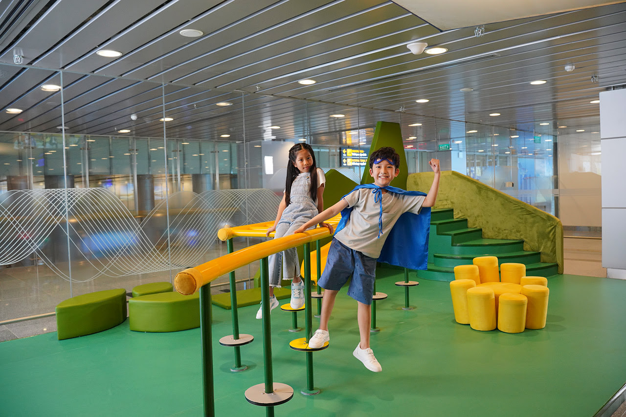 小朋友们可以在航站楼登机口附近的儿童娱乐区尽情玩耍。