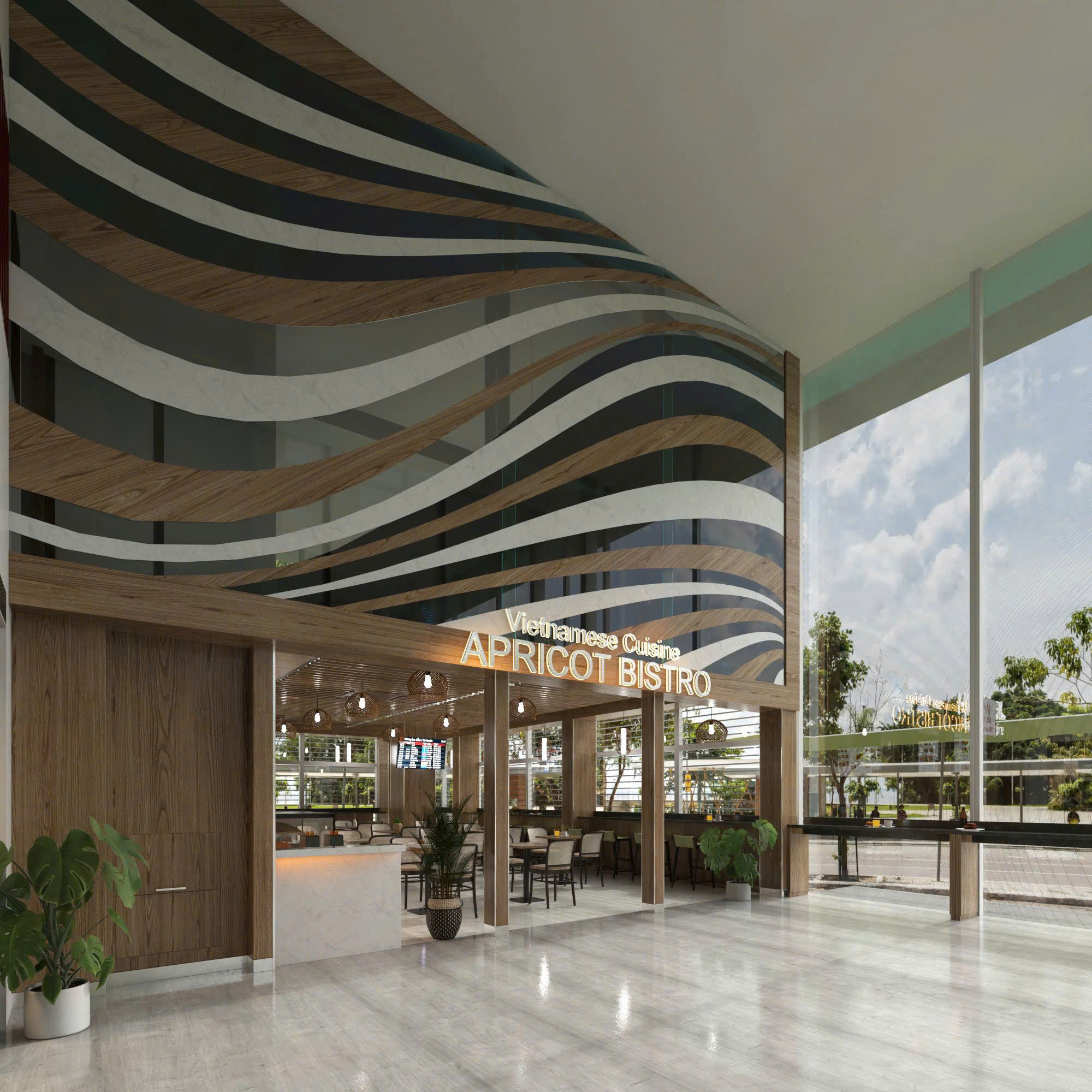Apricot Bistro offers a delicious escape for travelers seeking authentic flavors. The restaurant specializes in Vietnamese classics like savory beef and chicken Pho, crispy spring rolls with Bun Cha, and iconic Banh Mi. To satisfy a variety of palates, they also serve popular Korean favorites such as Kimbap and Tokbokki. Don't forget to pair your meal with their signature Salt Coffee for a unique local treat before your flight.