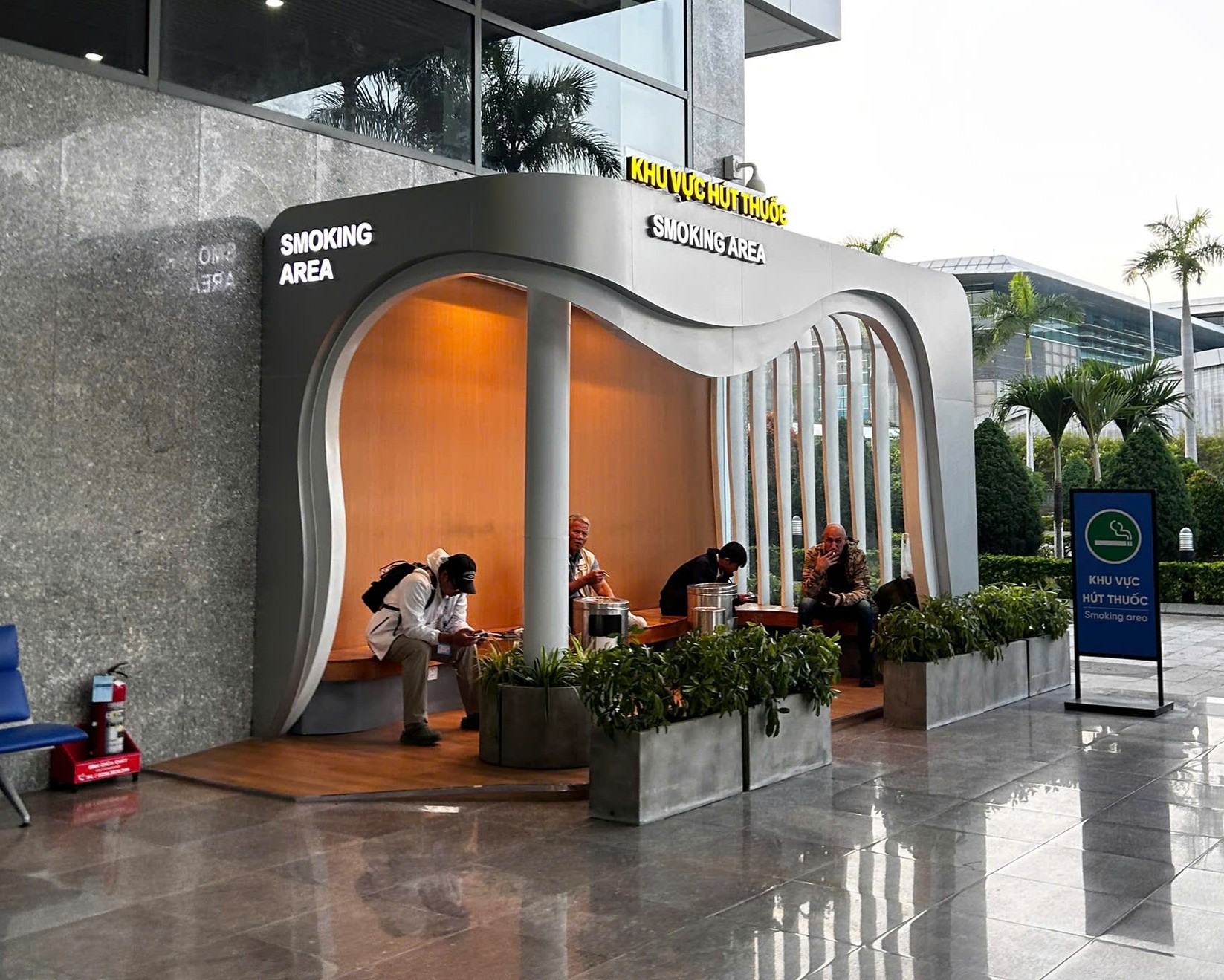 Smoking areas are located throughout the terminal, offering designated spaces for passengers to smoke comfortably.