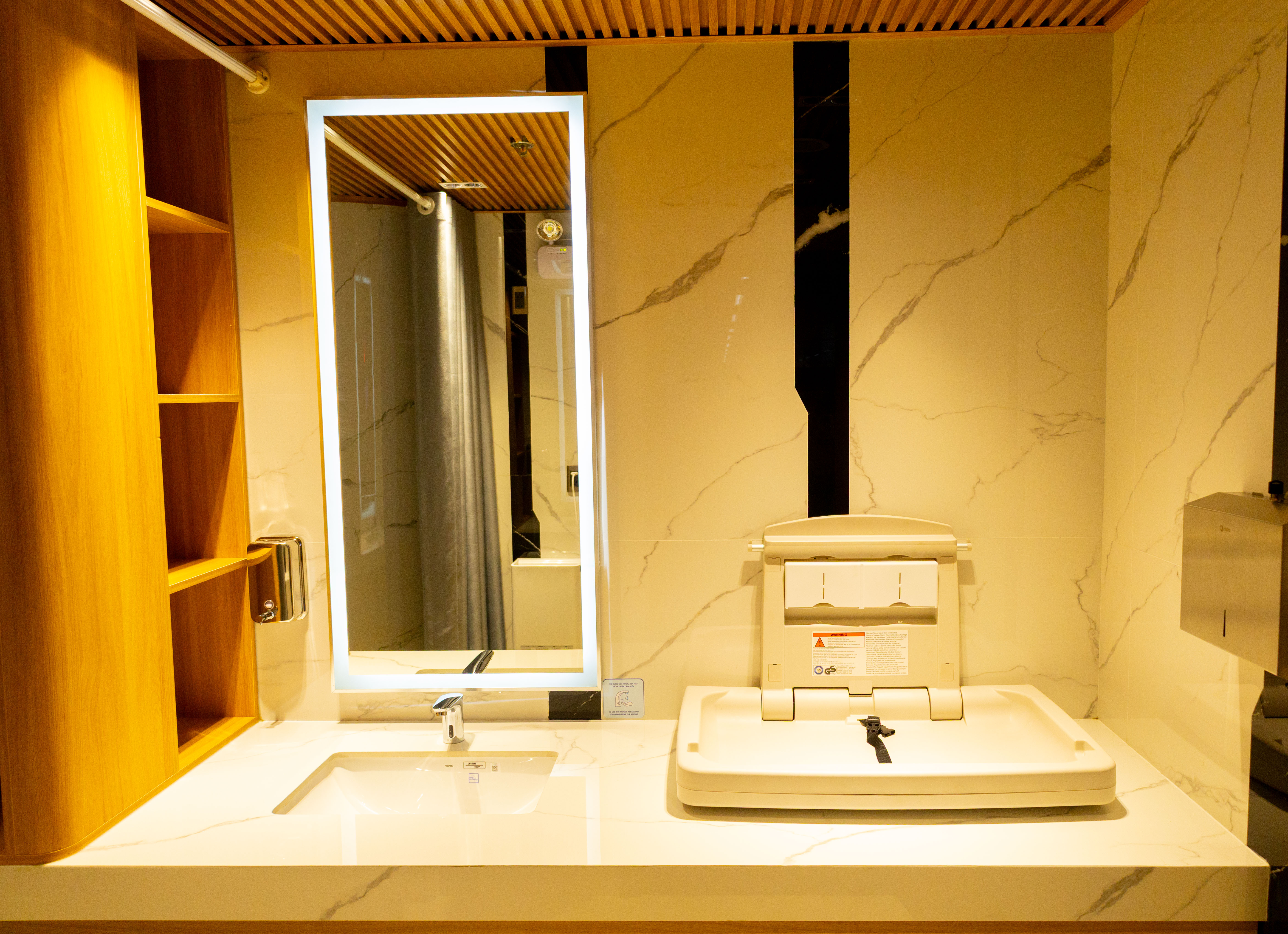 In the Departures restricted area, each room is equipped with a convenient baby-changing station. In the Arrivals restricted area, a dedicated nursing chair offers mothers a private, comfortable space to care for their little ones.